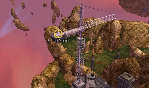 The Shadow Architect badge is located 181 yards NNW of the Point Foxtrot marker, on top of the west end of the arm on top of the crane.