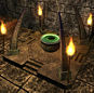 There | : There were three beams shooting up into the air. Next to each beam emitter (called [[Psionic Resonators]]) there was a cube-like object (called a [[Willforge]]) floating in midair. It spawned large groups of [[Soldiers of Rularuu]]. In order to destroy the resonators, all guardian Rularuu that spawned had to be defeated. Once all the Rularuu were defeated, the resonator had to be attacked. All three resonators had to be brought down at nearly the same time, with each of the three teams working on one. Once all three were down, the door to the Cathedral of Pain opened. | ||