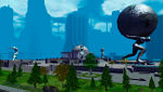 Paragon City, circa spring/summer - Power-armored soldiers destroy the recently finished Hero Corps building. (25 & 97)