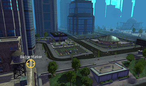 The Silent Sentinel Badge is 389 yards east of the Chiron Medical Center hospital, 361 yards north of the Hyperion Way marker. The badge sits on the ledge of a rooftop close to a water tower.
