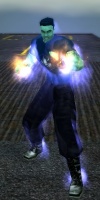 A short range conical blast of free electrons. This attack can bypass some of a target's defenses and reduce the target's Defense. It can also knock some targets down.