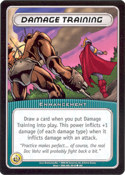 Draw a card when you put Damage Training into play. This power inflicts +1 damage (of each damage type) when it inflicts damage with an attack. |