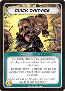 Immediately after putting Quick Damage into play, you may perform an action with this power. This power inflicts +1 damage (choose one damage type) when it inflicts damage with an attack.
