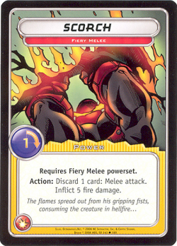 Action: Discard 1 card: Melee attack. Inflict 5 fire damage.