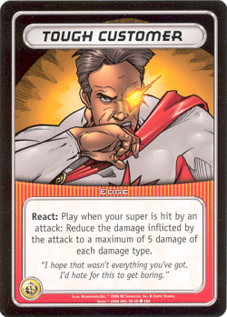 React: Play when your super is hit by an attack: Reduce the damage inflicted by the attack to a maximum of 5 damage of each damage type.