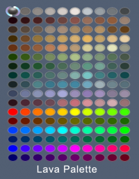 The Crystal (or Lava) color palette is one of several palettes available in Power Customization. An image of the palette is shown to the right with each color labeled descriptively to help colorblind individuals.