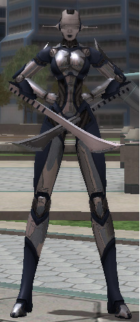 This costume will let you dress up as one of the Mk-VI "Victorias" at any time. Note that the costume is mutually exclusive with most self-stealth powers, and cannot be used while shape shifted.