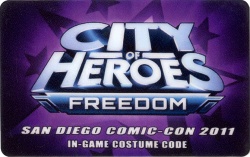 Game codes for this costume power were given to people who visited the NCsoft booth at San Diego Comic-Con 2011 from July 21-24, 2011.